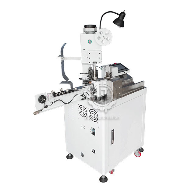 La coupe de fil, double-fin dépouillant, sertissant par replis sur une extrémité, et tordant le fil sur une extrémité sont tout possible avec cette unité de rabattement de terminal simple complètement automatique de tête. Elle peut sertir par replis le fil simple, deux fils, les fils minces, les fils épais, et les fils parallèles à un grand choix de terminaux.